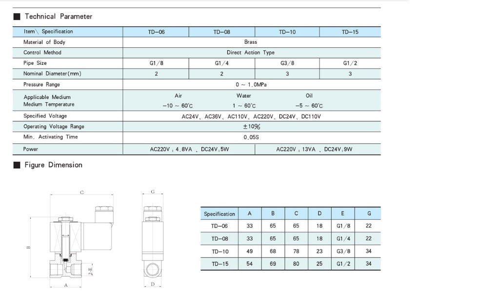 Solenoid Coil for Brass Valves DC / AC (Inner Diame 9mm) - Model TD-06 ,TD-08