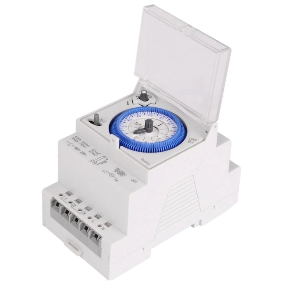 Voltage: 110–230 V Frequency: 50–60 Hz Switching Capacity: 16 A (4 A) Rated Voltage: 250 V Program: 24 h Power Reserve: R 200 H (230 V), R 100 H (110 V) Dimensions: 45 × 54 × 60 mm