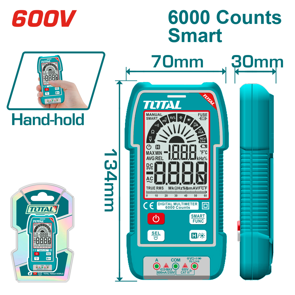 DC/AC Voltage: 60mV/600mV/6V/60V/600V