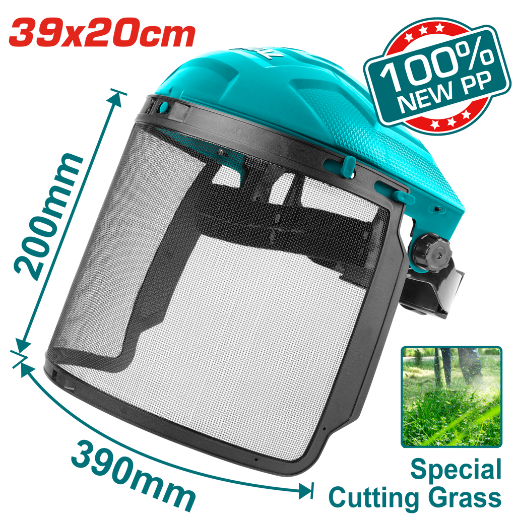 Ultra clear view mesh visor Brim protects forehead from outside injure Headgear with adjustable knobs, with antibacterial sweatband Packed by label