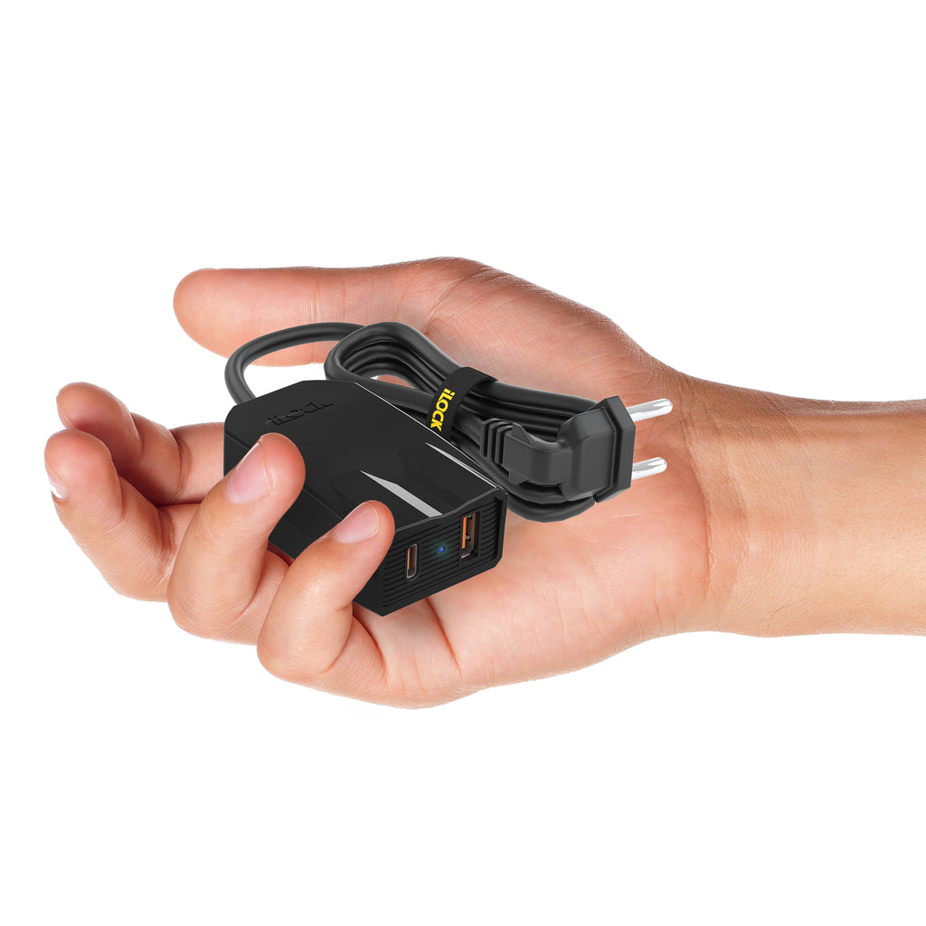 مزود بمخرجين كهربائيين لتوصيل أجهزة إضافية مثل اللابتوب أو شواحن أخرى.