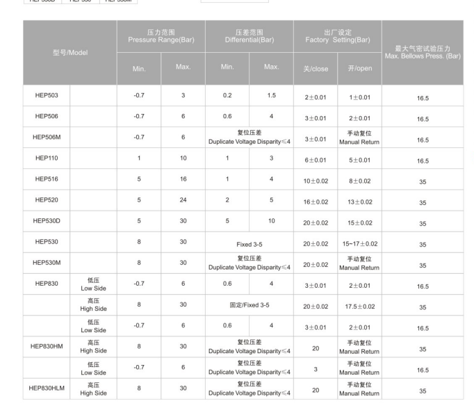يُستخدم مفتاح التحكم في الضغط لحماية أنظمة التبريد أو التكييف من الضغط الزائد أو الضغط المنخفض في دائرة ضواغط التبريد.