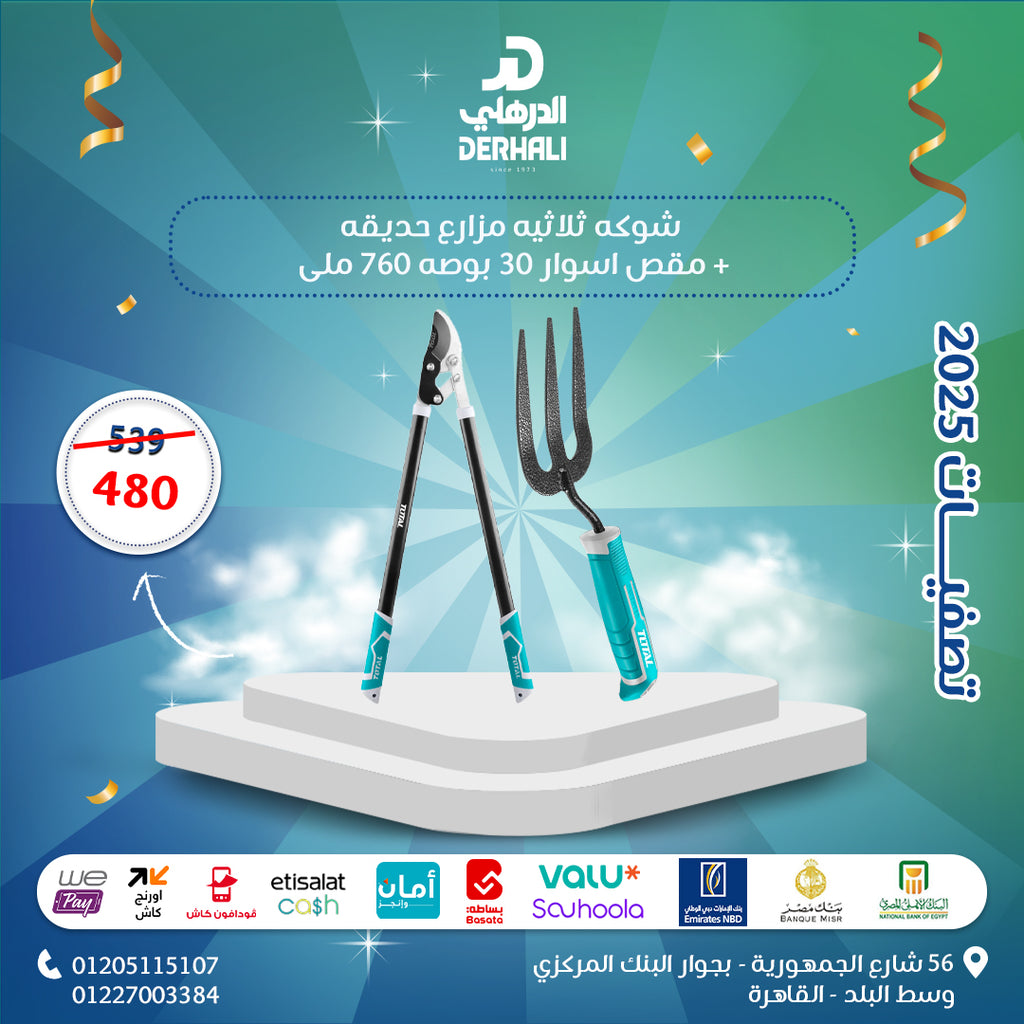 طقم ادوات حديقة من توتال تولز قطعتين – شوكة حديقة 320 مم ومقص اسوار 30 بوصة - Promotion-006