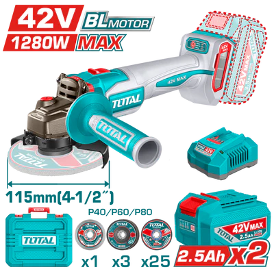 توتال تولز صاروخ بطارية براشليس سرعات 42 فولت 4.5 بوصه + 2 بطارية + شاحن - TAGLI4128112