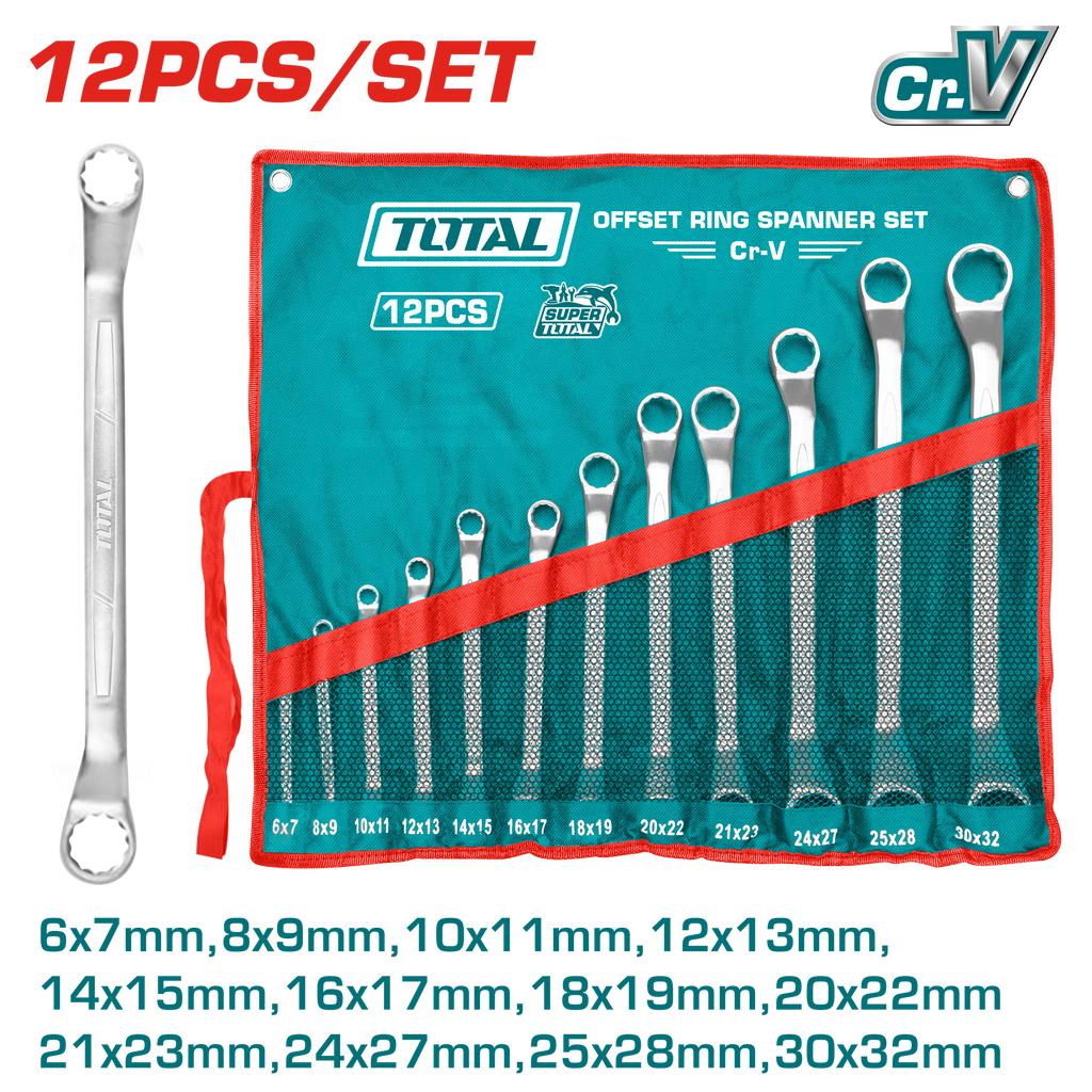 12pcs offset ring spanner setSize:6-32mm6x7mm,8x9mm,10x11mm,12x13mm,14x15mm,16x17mm,18x19mm,20x22mm,21X23mm,24X27mm,25X28mm,30X32mmFine polished Packed by canvas bag