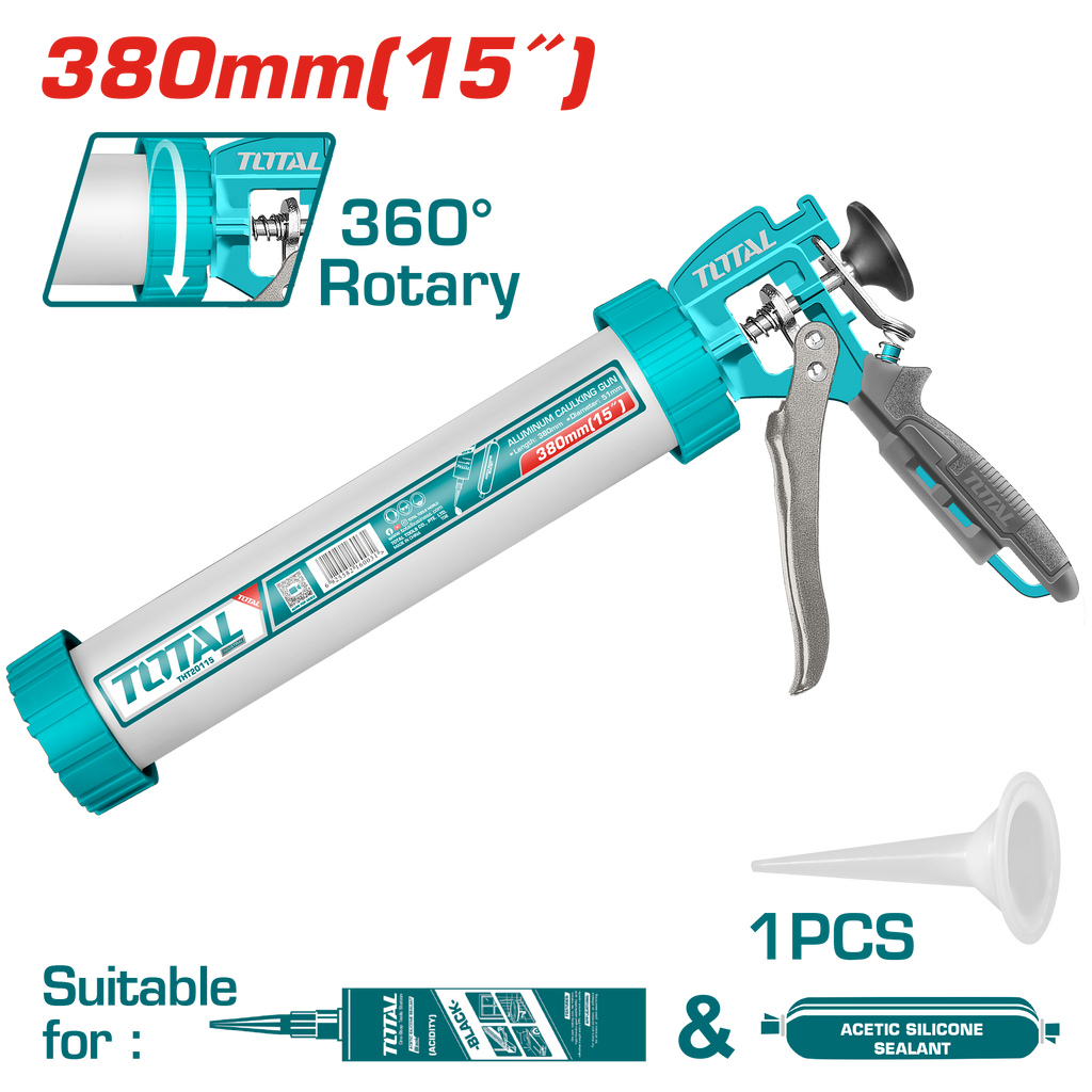 15" aluminum caulking gun Strong aluminum handle Length:380mm Diameter:51mm Packed by Label