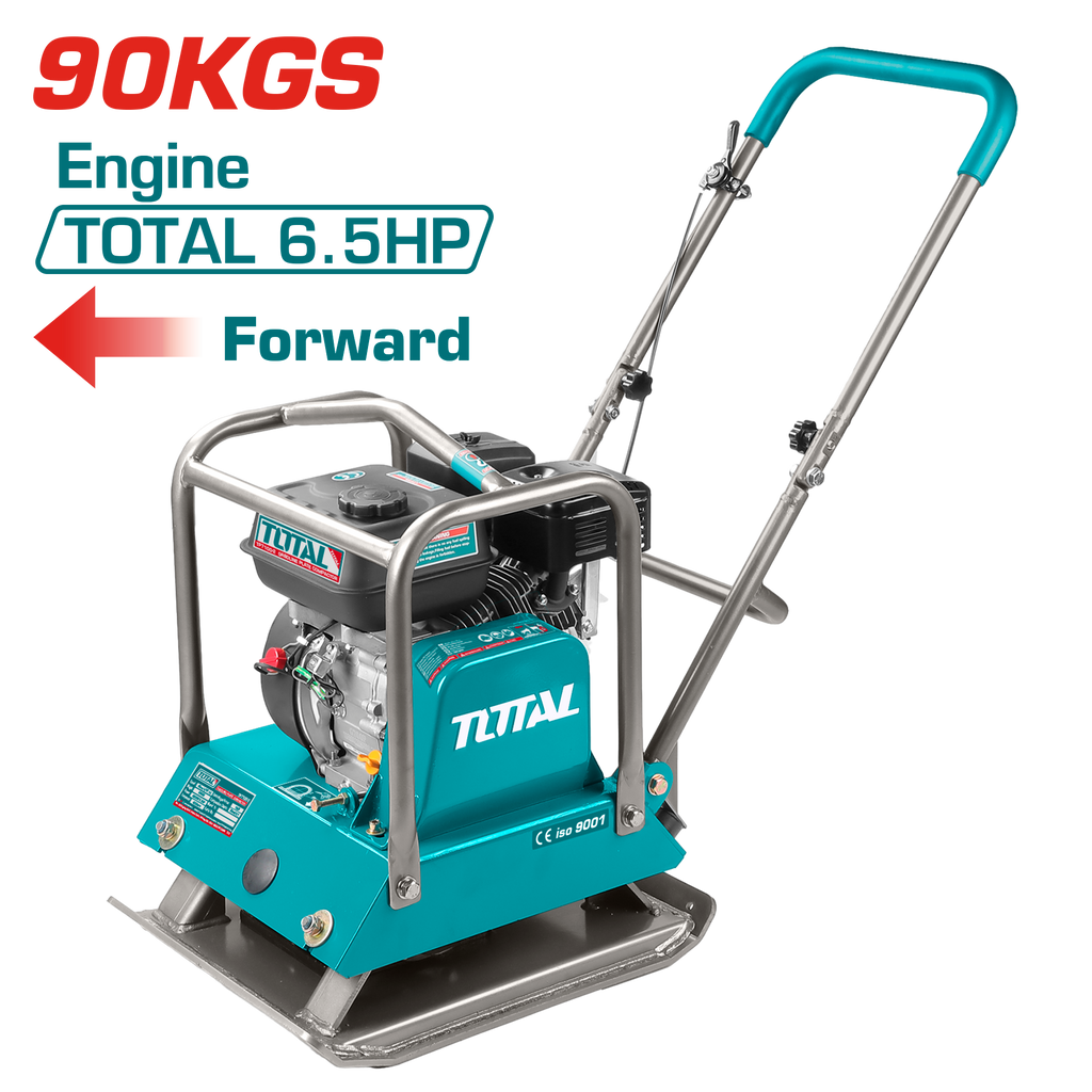 Gasoline engine Engine power:4.8kW(6.5HP) Weight:90kg Frequency:4200VPM Centrifugal force:15kN Compaction depth:30cm Travel speed:45cm/s Efficiency:660㎡/Hr Plate size:56x44cm Packed by carton box