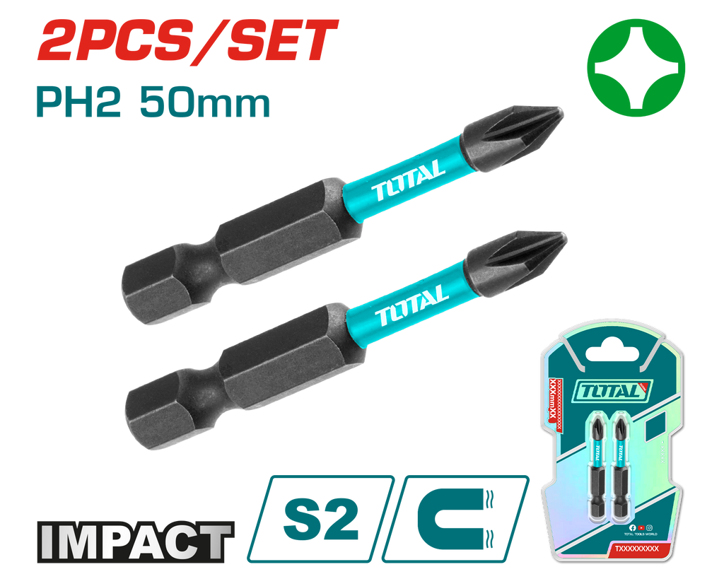 Impact Screwdriver bits PH2,50mm,2pcs/set S2 industrial steel Black surface with magnet Packed by double blister