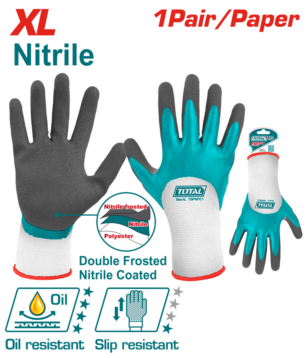حماية لليد : مناسب لبيئات العمل شديدة الزيوتالمقاس : XLخامة البطانة : خيوط بوليسترالخامة / التشطيب : طلاء نيترايل مزدوج فروستدرجة الحياكة : 15عدد 1 زوج / كارت ورقيمعبأ على كارت ورقي
