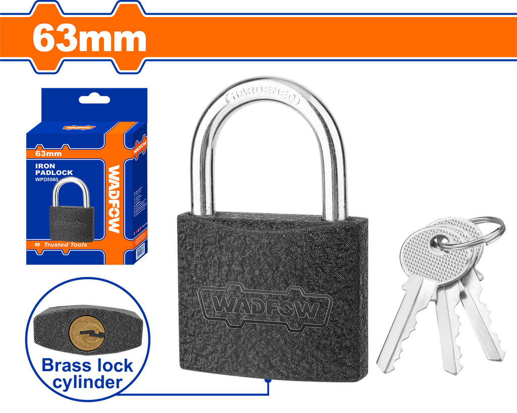 المقاس: 63 ممالوزن: 370 جممادة جسم القفل: حديدأسطوانة القفل: نحاسمزود بعدد 3 مفاتيح حديدمعبأ في علبة كرتون ملونة